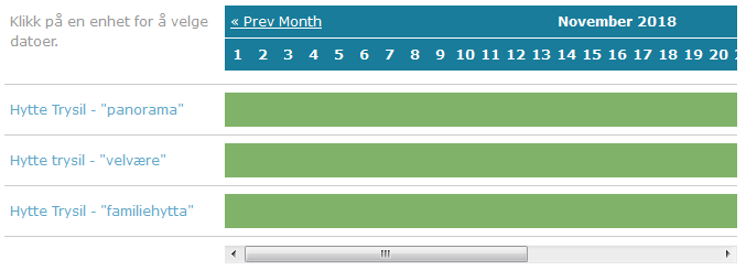 Har du en hytte eller to til utleie? Trenger du et system for utleie av grendehus? Kanskje du har et feriehus i utlandet som du vil leie ut? Da kan du bruke vårt bookingsystem og spare deg for tid og penger. Bookingkalenderen integreres lett i din eksisterende hjemmeside og du får full kontroll på bestillinger og når boligen er ledig. Kundene ser enkelt når det er ledig og kan booke uten å sende forespørsel som du må behandle manuelt.